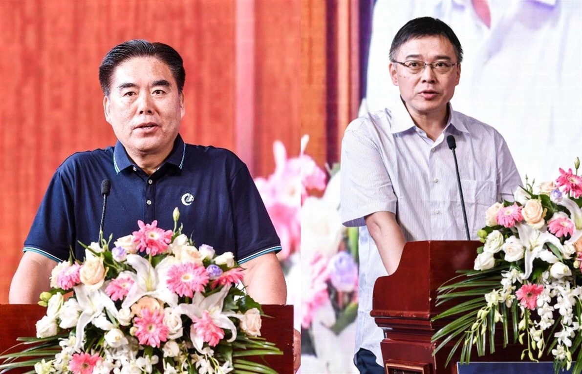 致辭:左為中國畜牧業(yè)協(xié)會會長李希榮,右為農業(yè)農村部食物與營養(yǎng)研究所副所長王曉紅