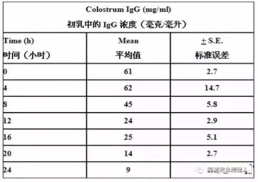 寄養(yǎng)其實(shí)對(duì)母豬和仔豬來講均是一種應(yīng)激,且寄養(yǎng)易導(dǎo)致疾病交叉感染,所以產(chǎn)房應(yīng)盡量減少寄養(yǎng),特別要嚴(yán)禁跨單元寄養(yǎng)。當(dāng)產(chǎn)后母豬泌乳量嚴(yán)重不足、產(chǎn)仔數(shù)過多、母性差、母豬體弱多病、有惡癖或甚至母豬死亡時(shí)才可考慮寄養(yǎng),寄養(yǎng)應(yīng)在仔豬出生后24小時(shí)內(nèi),并保證仔豬吃到充足初乳后進(jìn)行。由表1可以看出,初乳中的IgG濃度其實(shí)到了產(chǎn)后12小時(shí)只有剛產(chǎn)完時(shí)的一半都不到。產(chǎn)后24小時(shí)幾乎只有剛產(chǎn)完時(shí)的1/7的濃度。